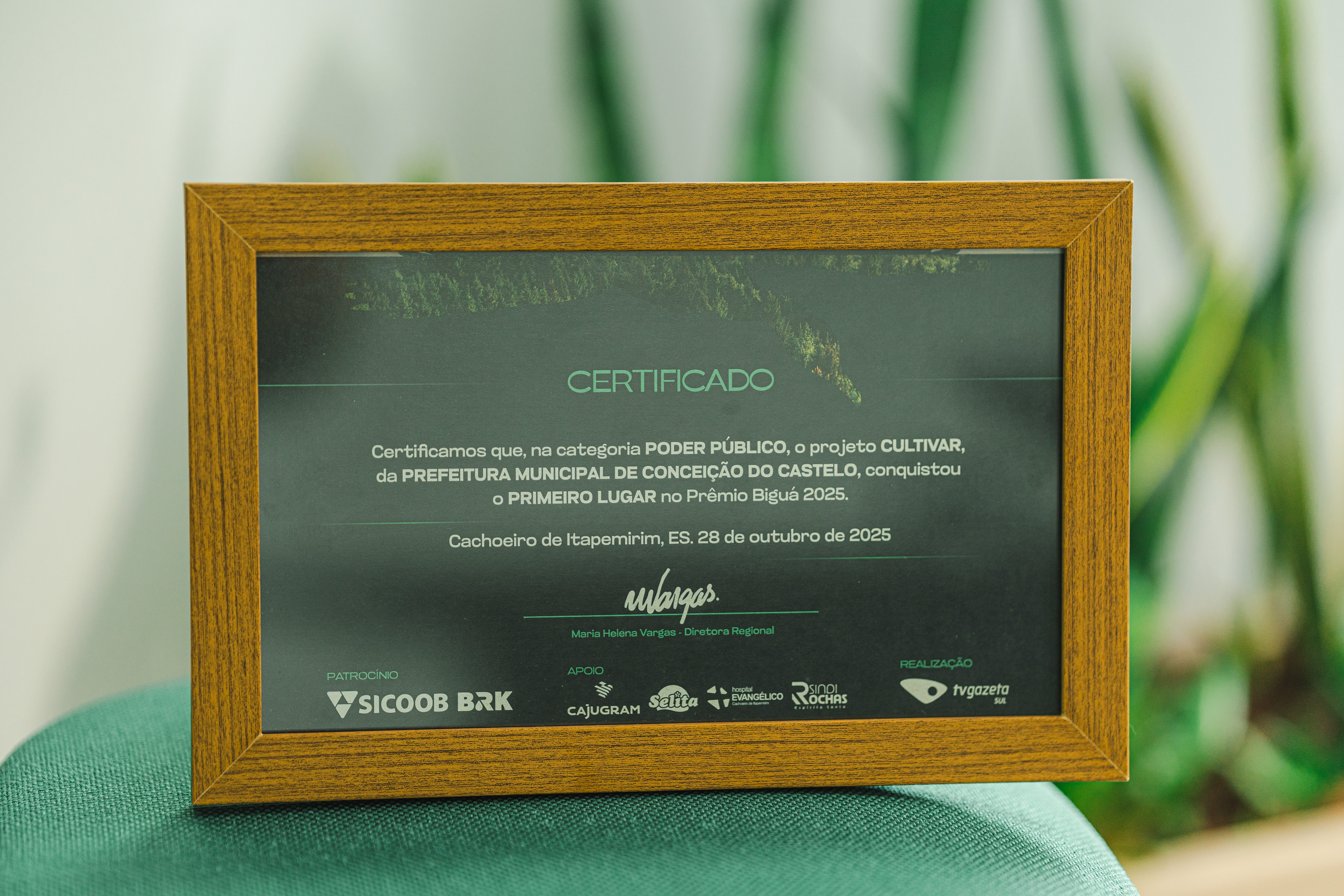 A conquista é fruto do trabalho desenvolvido por meio do Projeto Cultivar, executado no município de Conceição do Castelo, que tem se destacado pelas ações estruturantes voltadas à restauração ambiental, fortalecimento da produção sustentável e melhoria da qualidade dos recursos naturais na região.
