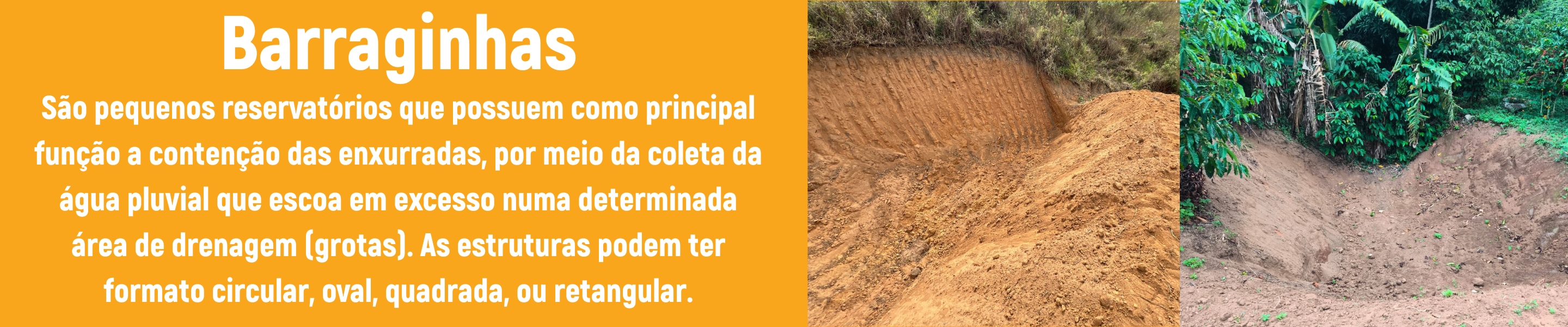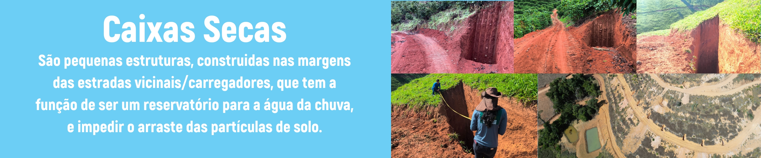 Dentro das ações de práticas mecânicas são ofertadas as estruturas deCaixas secas, barraginhas, terraceamento em nível e adequação de estradas rurais. Já as práticas vegetativas ofertam, Recuperação com Plantio de espécies nativas (REC), Sistemas Agroflorestais (SAFs), plantio de sementes (leguminosas e gramíneas); Regeneração Natural (REG), cercamento e calagem.